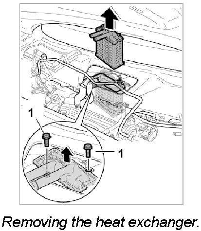 3. Undo the two fastening screws -1- and carefully lift the heat exchanger up and out.