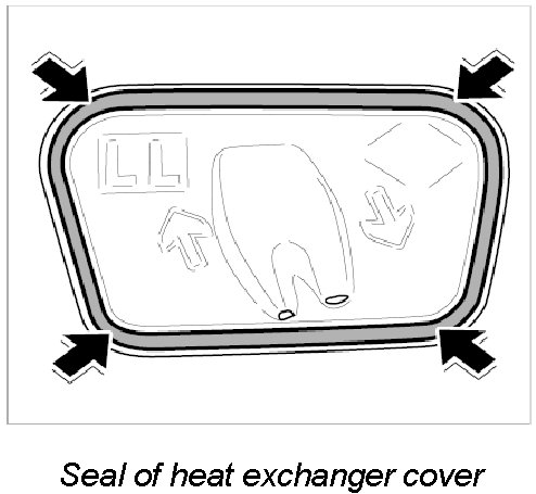 2. Check the seal at the cover of the heat exchanger and repair using a commercially available butyl adhesive or replace if necessary.