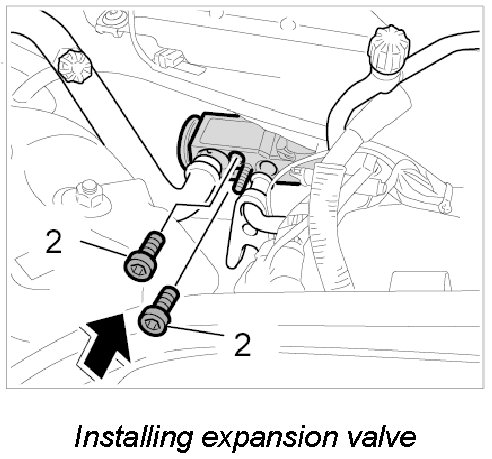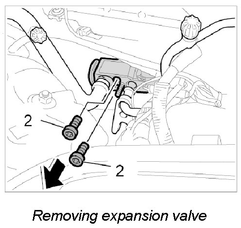 3. Unscrew fastening screws -2- and remove expansion valve.