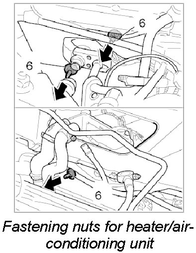 11. Push dashboard bracket forwards while lifting the heater/air-conditioning unit and taking care that no electric lines get trapped.