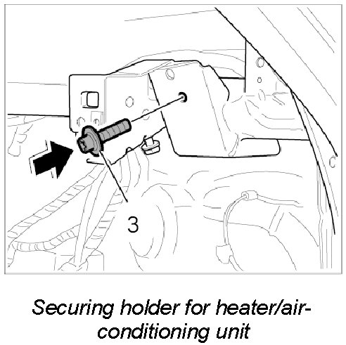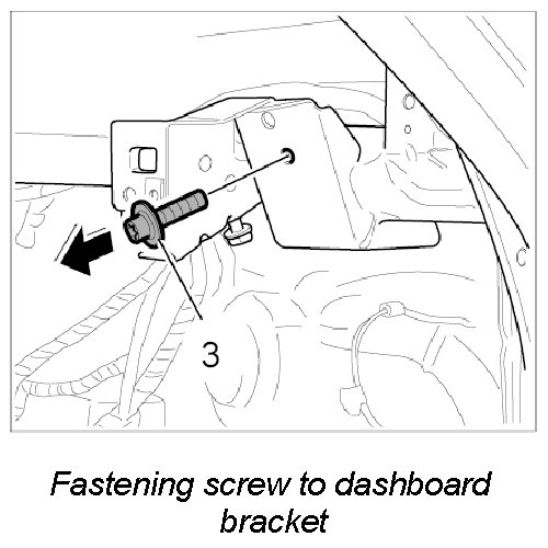 5. Unscrew fastening screw -3- for securing holder of the heater/air-conditioning unit to right side of dashboard bracket (next to A-pillar).