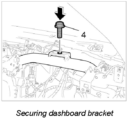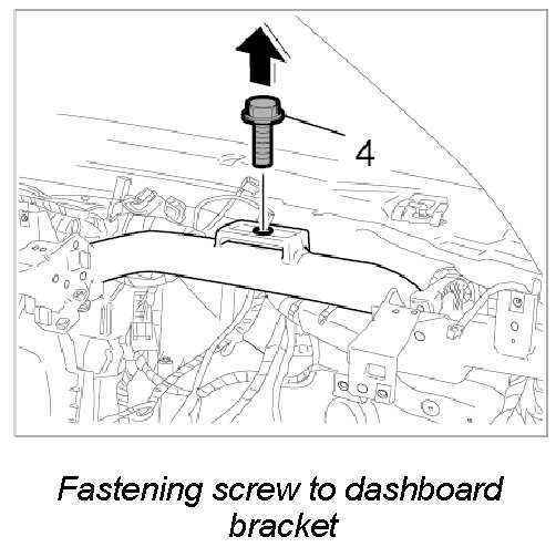 14. Secure dashboard bracket with the fastening screw -4-. - Tightening torque: 9.7 Nm (7.0 ft. lbs.)