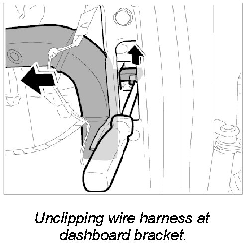 8. Unclip holder for electric harness with a screwdriver from right side of dashboard bracket.