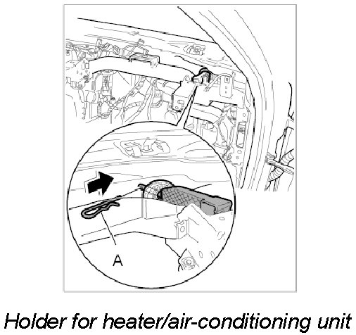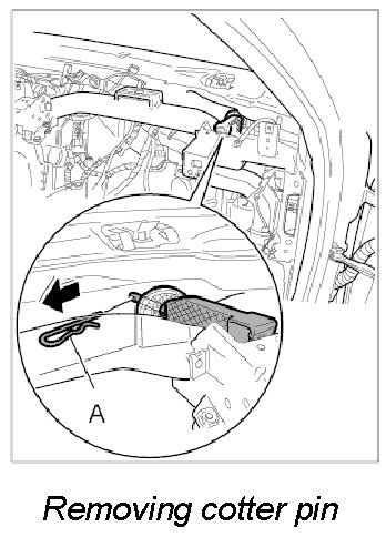 10. Pull out cotter pin -A- for holder of the heater/air-conditioning unit.