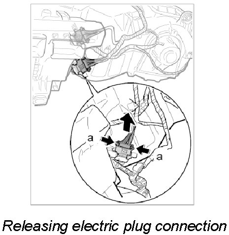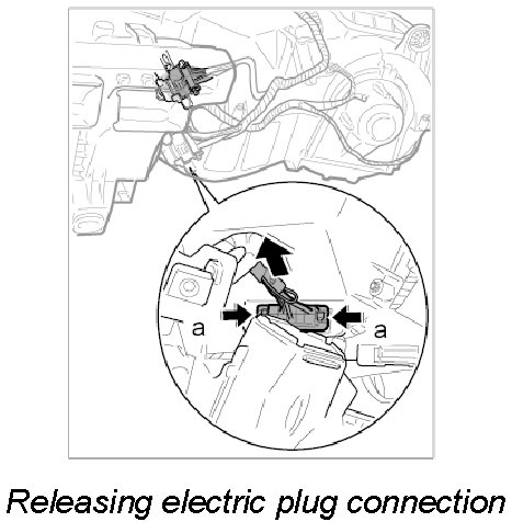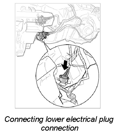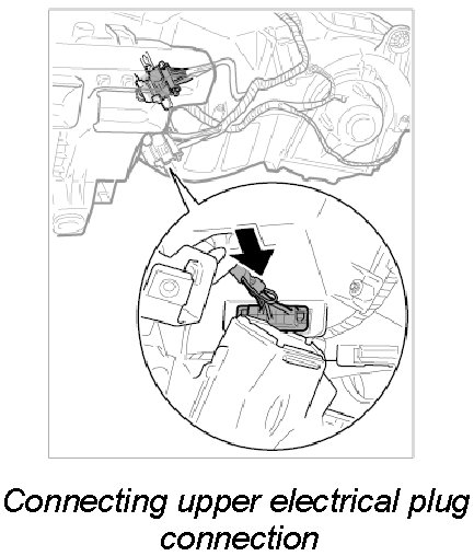 5. Connect upper electric plug connection at heater/air-conditioning unit until it is felt to engage.