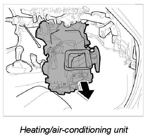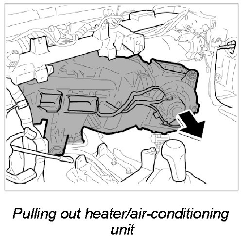 19. Remove heater/air-conditioning unit from passenger compartment via passenger's door.