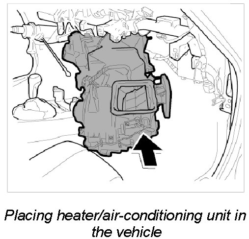 1. Insert heater/air-conditioning unit in the vehicle over the passenger's side.