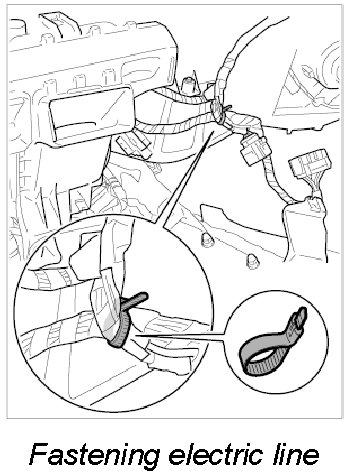 4. Lay electric line from vehicle wire harness to heater/air-conditioning unit wire harness and fix with a tie-wrap.