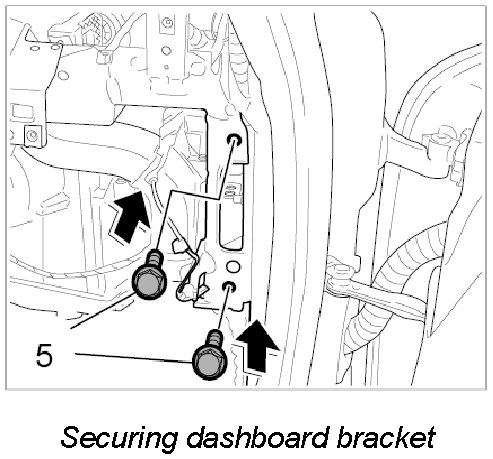 12. Screw down dashboard bracket with the two fastening screws -5-. - Tightening torque: 23 Nm (17 ft. lbs.)