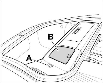 - Disengage and remove cover over brake fluid reservoir -B-. Check brake fluid level.
