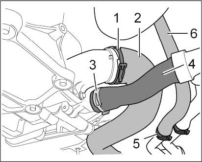 ^ Deformation of the rubber hoses of the cooling system is normal.
