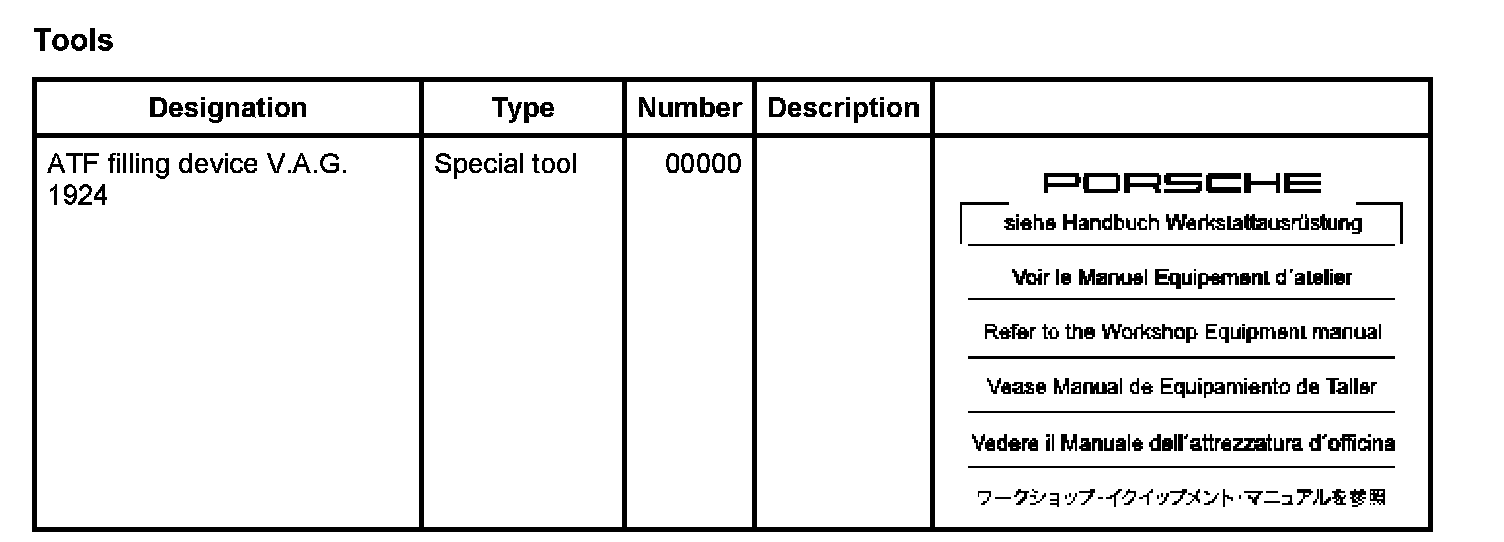 Information: Fill only with ATF approved by Porsche. See Spare Parts Catalogue.