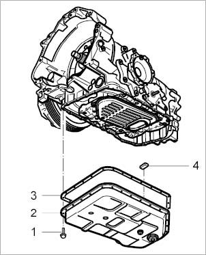 2. Remove ATF- pan -2- with seal -3-. Pay attention to the magnet -4-.
