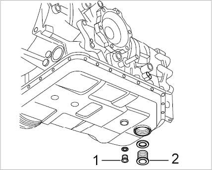 1. Unscrew ATF drain plug -1- and drain ATF.