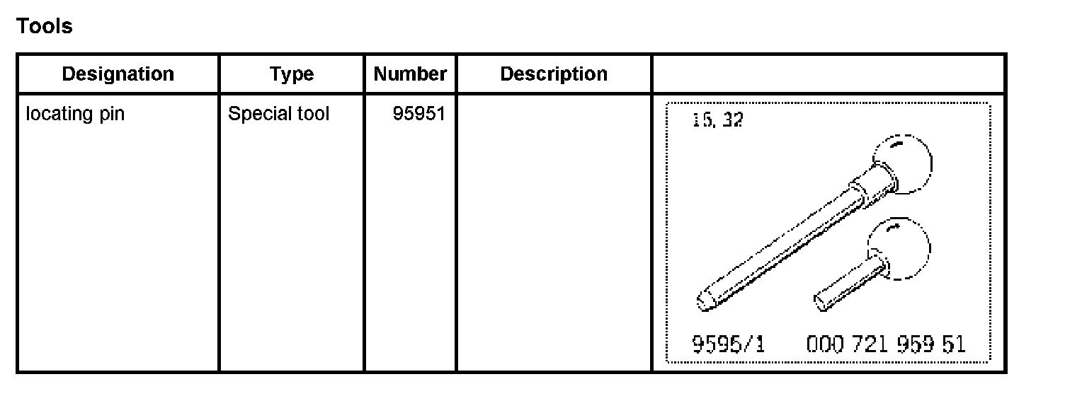 1. Pull out locating pin 95951 (long) from transmission housing.