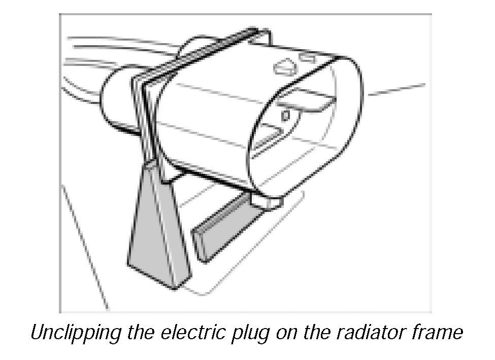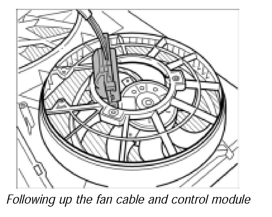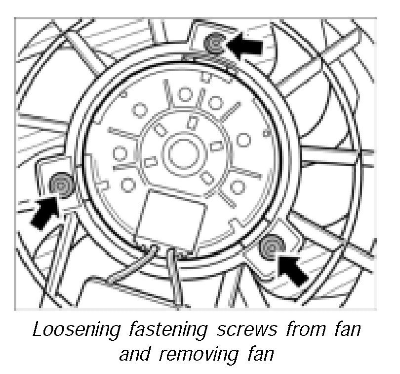 2. Undo the 3 fastening screws on fan and pull fan down and out.