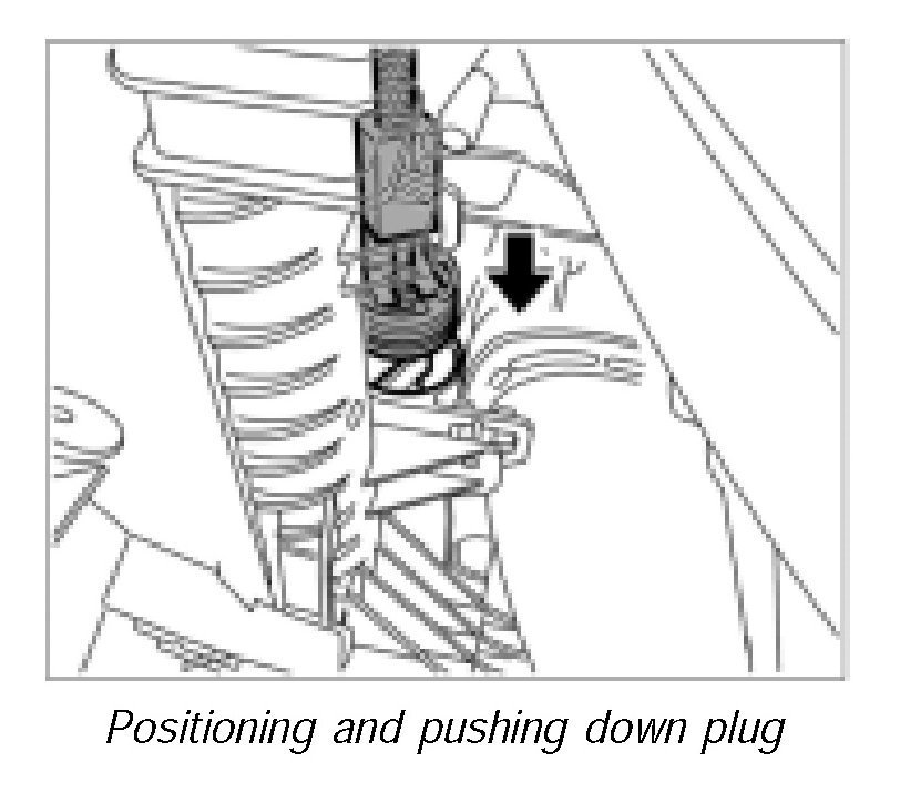 5. Place rubber stopper on plug -arrow A- and screw in -arrow B-.