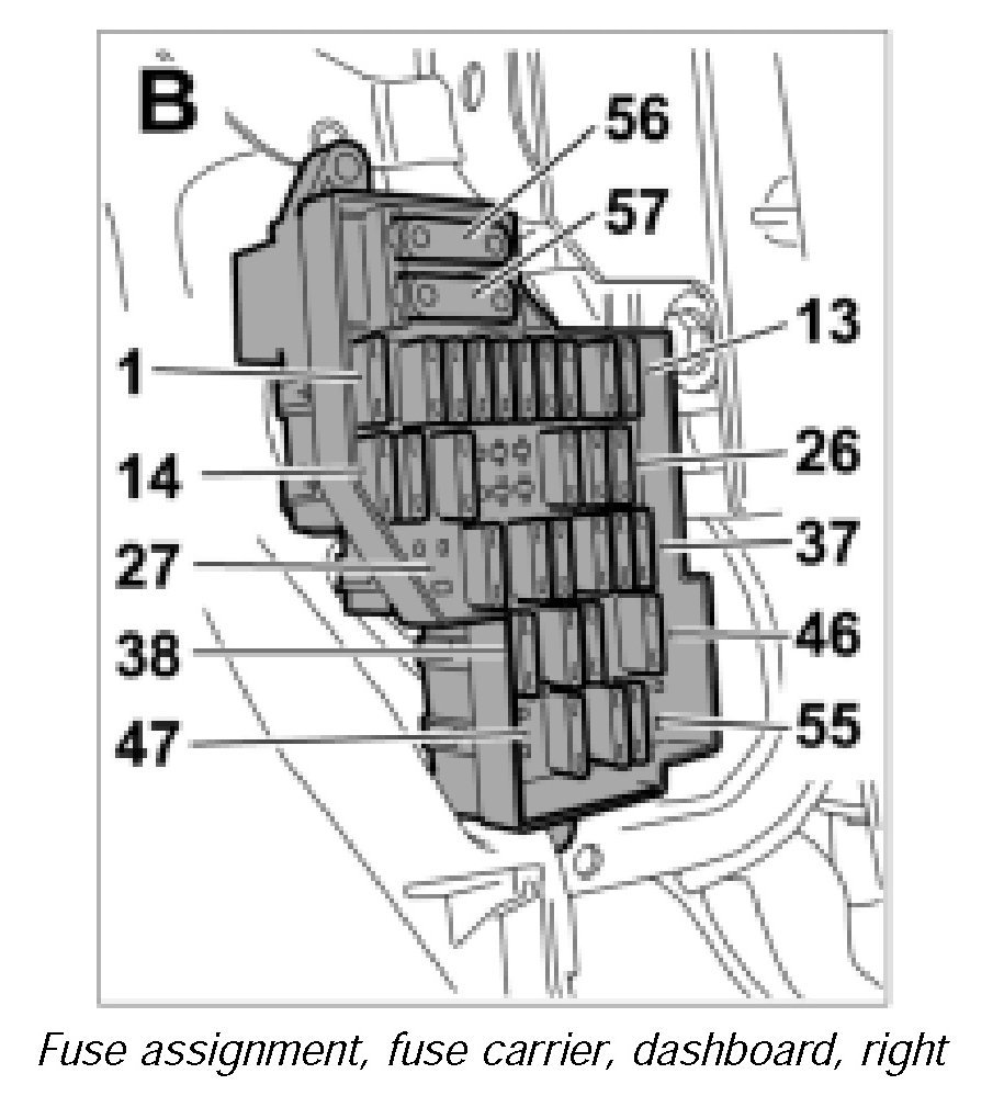 Fuse Assignment, Fuse Carrier, Dashboard, Right