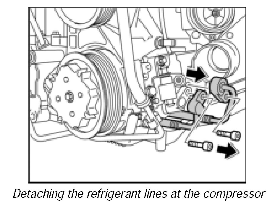 2. Remove the refrigerant lines at the compressor.