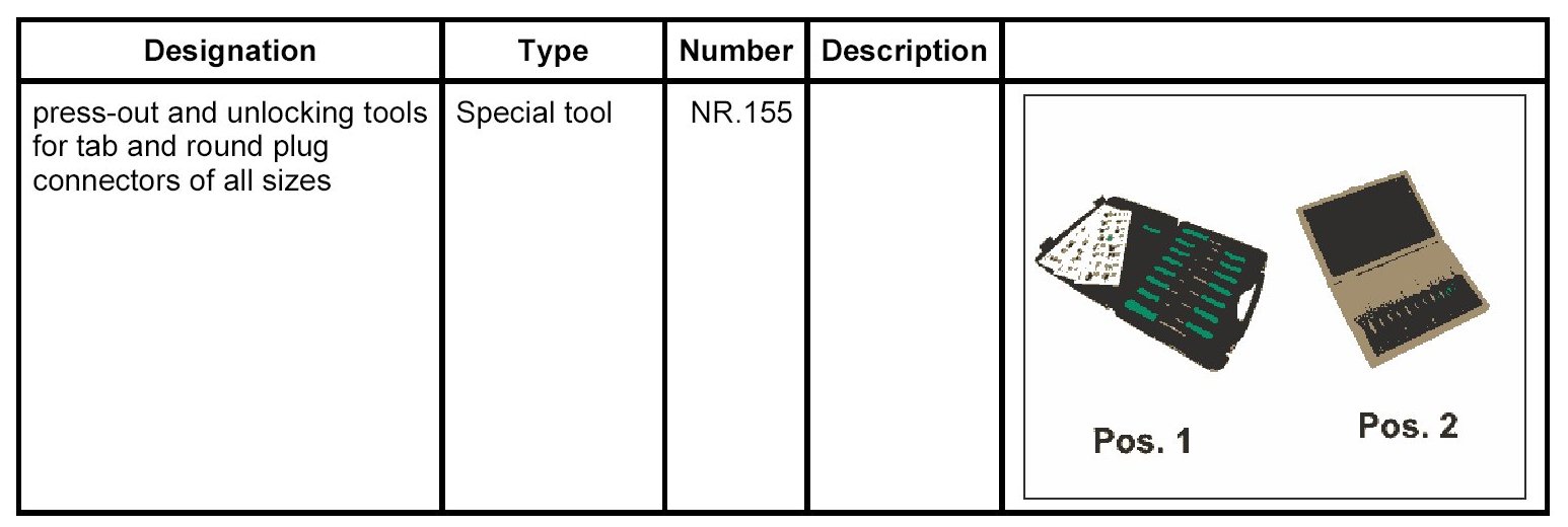 1. Open the secondary locking mechanism using the press-out and unlocking tools for tab and round plug connectors of all sizes NR.155.Insert the tool in the opening provided and lift the locking mechanism. The locking mechanism engages in the upper position.
