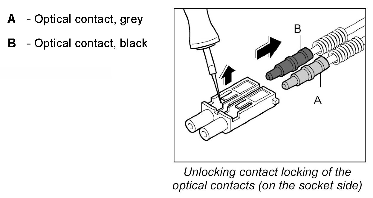 INFORMATION: Observe the general information on optical waveguides. -> General information on optical waveguides - MOST bus
