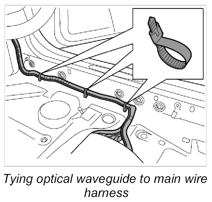 2. Route the new optical waveguide along the main wire harness, guide it through the existing cable ducts and tie it to the main wire harness using tie-wraps.