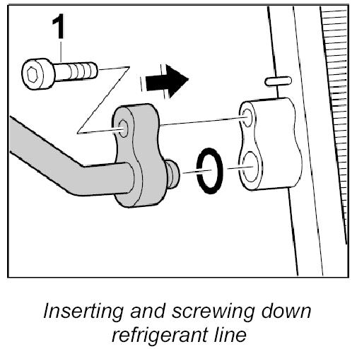 2. Insert compressor-condenser line into the line to the compressor and fasten with the fastening screw -2-.
