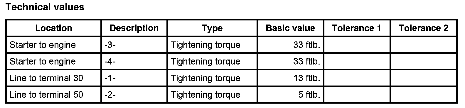 1. Insert starter into the bracket from above and install with the upper fastening screw -3- . - Tightening torque: 33 ftlb.