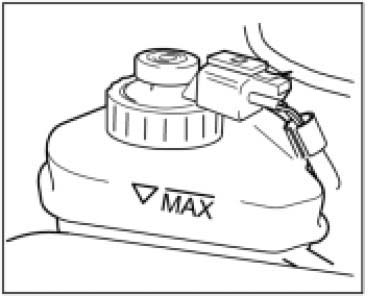 8. Switch off bleeding device and remove the adapter on the brake fluid reservoir. The brake fluid level in the brake fluid reservoir must be between the MIN and MAX markings once the vehicle has been filled and bled. Adjust the brake fluid level if necessary.