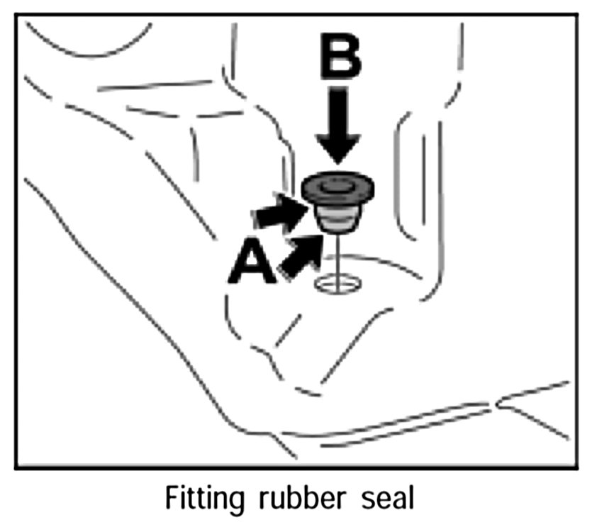 1. Apply a suitable rubber lubricant (tyre mounting paste) to sealing surface -arrows A- and press rubber seal into tank -arrow B-until it is felt to engage.
