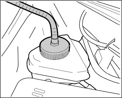 2. Connect a bleeding device to the brake fluid reservoir. Switch on the bleeding device. Bleeding pressure is approx. 2.0 bar.