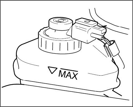 7. Remove bleeding device from brake fluid reservoir and screw cap on. The brake fluid level in the brake fluid reservoir must be between the MIN and MAX markings once the vehicle has been filled and bled. Adjust the brake fluid level if necessary.
