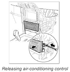 1. Using a screwdriver, press the side holder to the left and right and pull out the air conditioning control from the installation slot.