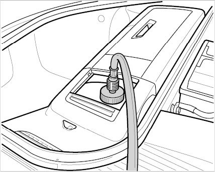 8. Remove bleeding device from brake fluid reservoir and screw cap on. The brake fluid level in the brake fluid reservoir must be between the MIN and MAX markings once the vehicle has been filled and bled. Adjust the brake fluid level if necessary.