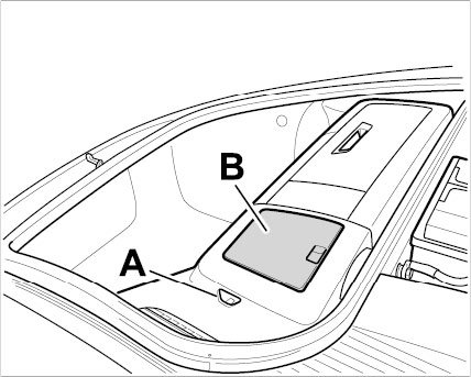 1. Disengage and remove cover over brake fluid reservoir -B-.