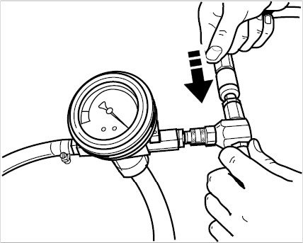 5. Connect the vacuum pressure gauge of the bleeder tool to the flexible extension. When doing so, ensure that both shutoff valves are closed (positioned at 90° with respect to flow direction).