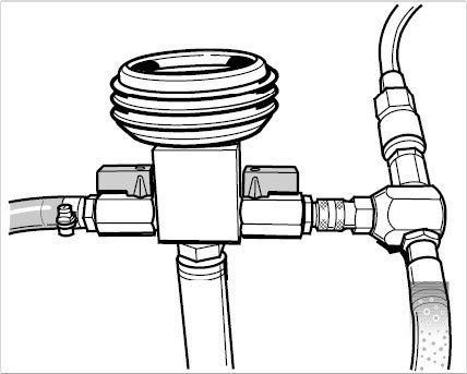 Left-hand shutoff valve open - right hand valve (arrow) closed