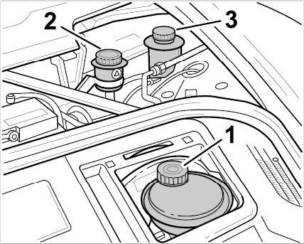 ^ The supply tank for power steering and the clutch booster circuit is located in the engine compartment.