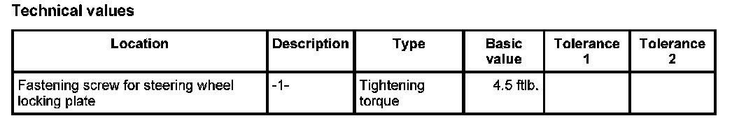 3. Position locking plate on steering wheel and screw down using the four fastening screws -1- and the washers. Tightening torque: 4.5 ft. lbs.
