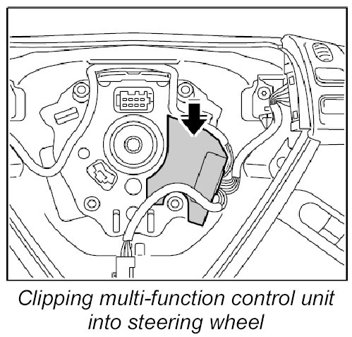 2. Clip multi-function control unit into steering wheel. Check that it is secure.