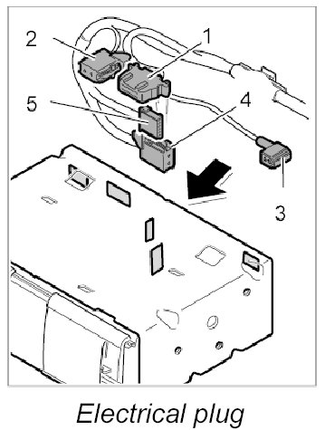 2. Unlock the electrical plug -1, 2, 3- on the navigation unit and pull out the navigation unit.