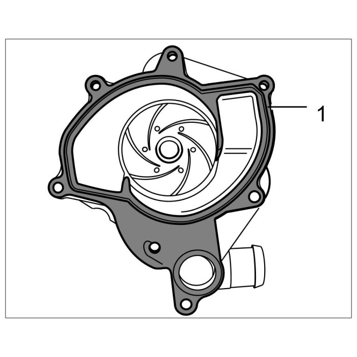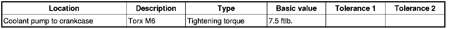3. Fit coolant pump to crankcase and secure with seven Torx screws, two M6 x 30 and five M6 x 25. Tighten screws => Tightening torque: 7.5 ftlb..