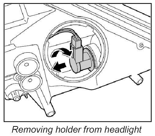 2. Turn bulb holder to the right (bayonet lock) and pull it out of the headlight mounting point.