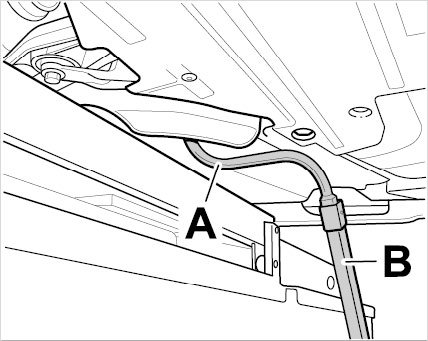 Use special tool (socket wrench insert) P 9730 -A- together with a torque wrench -B- to loosen and tighten the tie rod lock nut(s). The tightening torque of 50 Nm (37 ftlb.). for the tie rod lock nut(s) corresponds to a value of approx. 32.5 Nm (24 ftlb.). when using a socket wrench insert P 9730.
