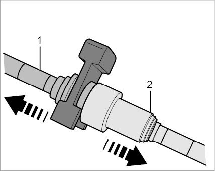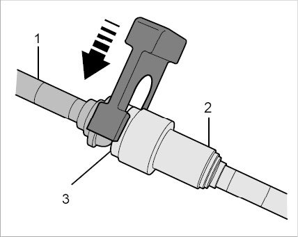 1.2. Once you have released the plug-in coupling (by inserting the loosening tool), pull the lines apart -arrows-.