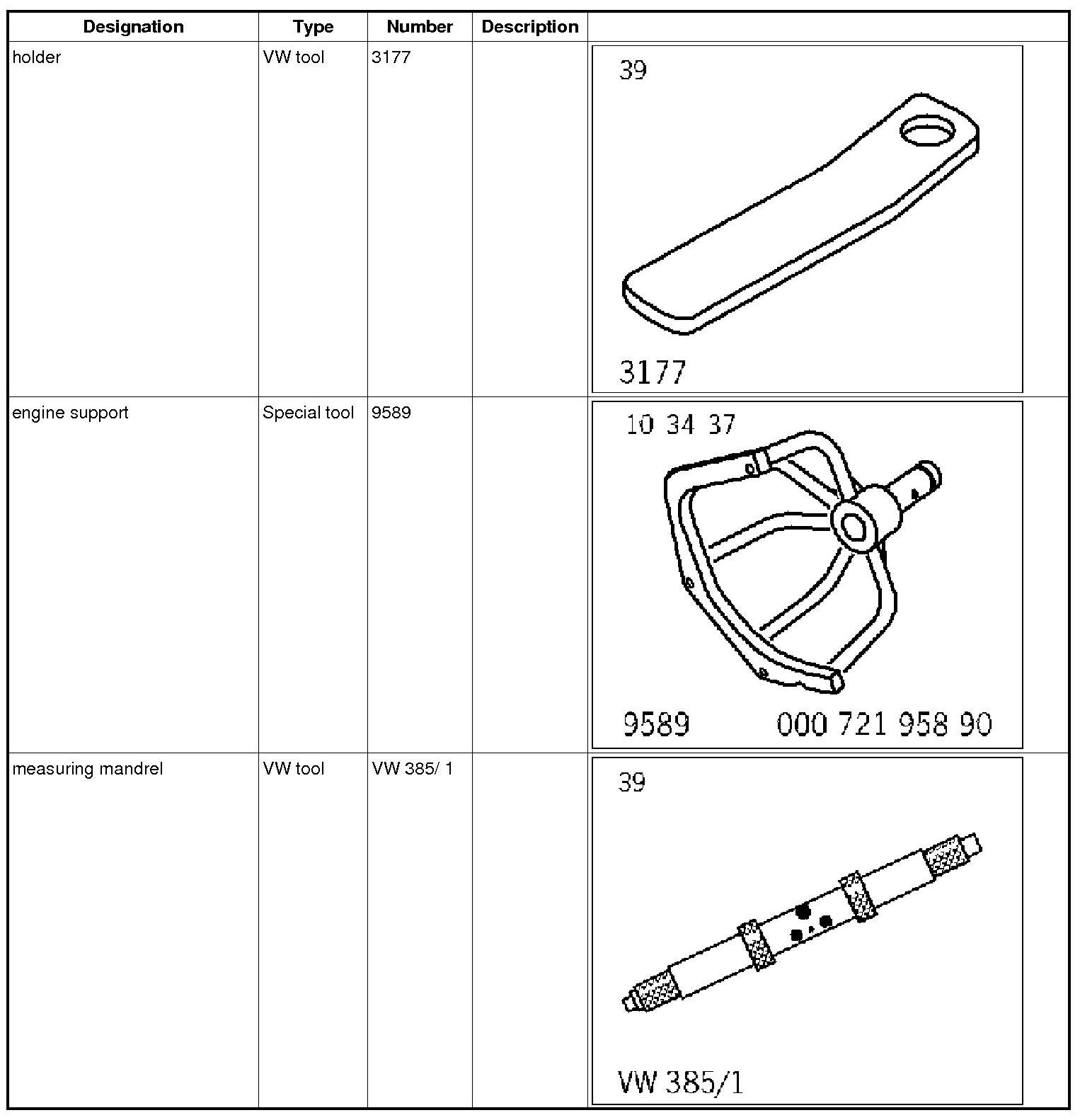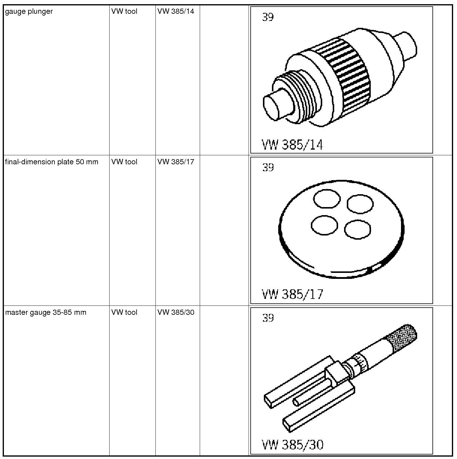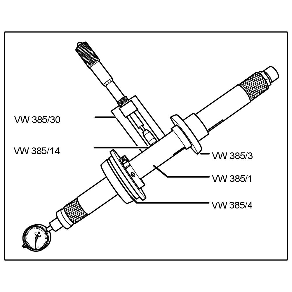 4. Prepare measuring mandrel VW 385/ 1. => see figure