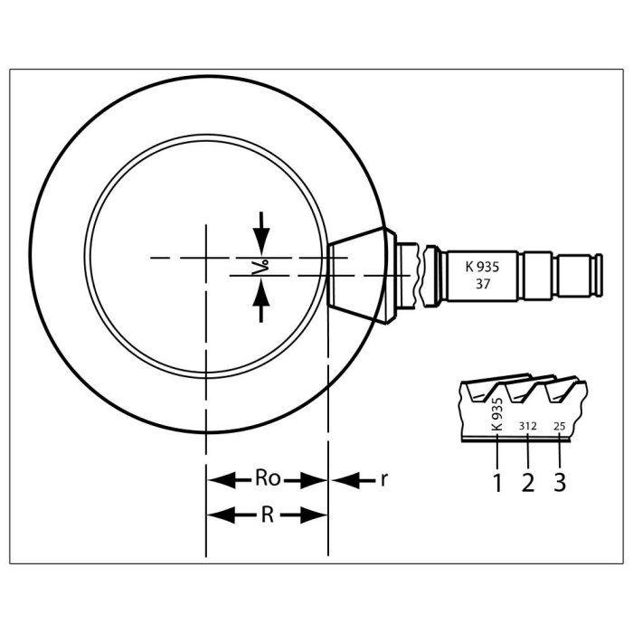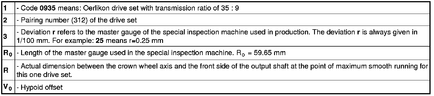 The deviation r refering to the master gauge Ro is measured for the drive sets supplied as spare parts and is then recorded on the outer circumference of the crown wheel. Every drive set (consisting of output shaft and crown wheel) must only be replaced as a complete unit.