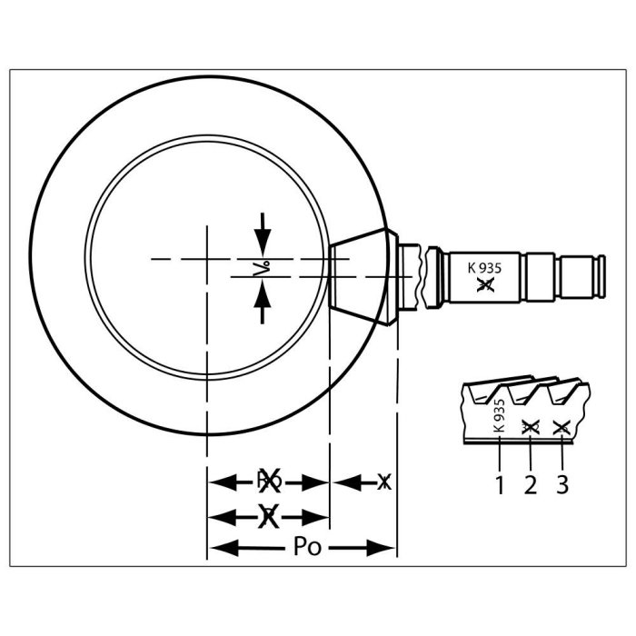 In the standard drive set, the position of the output shaft is determined by the dimension Po(centre of the crown wheel to the rear of the output shaft head). The dimension r on the crown wheel and the pairing number are not specified. Therefore, before removing the output shaft, an actual measurement must be made if parts which directly affect the installation position of the output shaft are to be replaced.