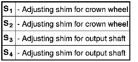 This work must be carried out only if the deviation r is not given on the crown wheel and if parts which directly influence the output shaft position are to be replaced. These parts are: both taper roller bearings for the drive shaft and the transmission housing.