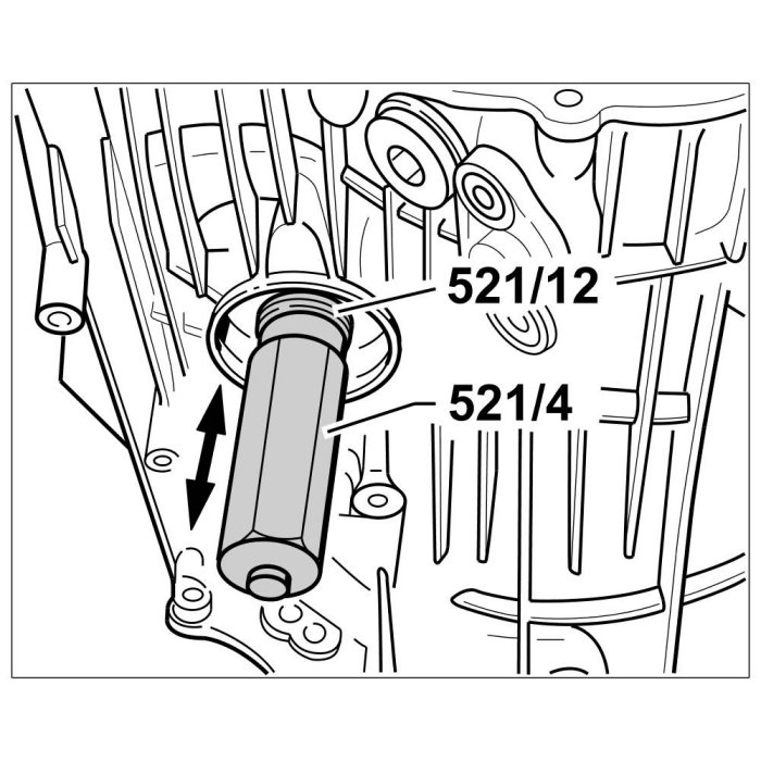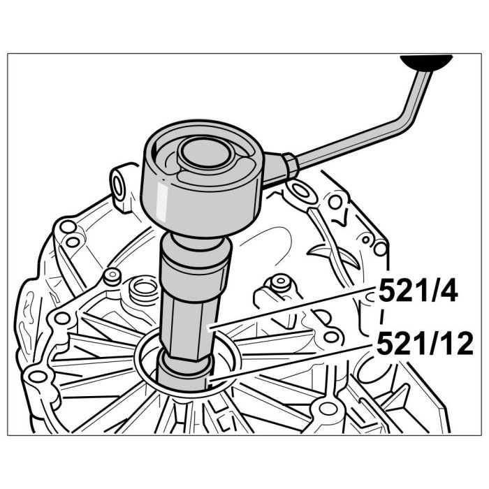4. Insert adjustment device VW 521/4 and clamping bush VW 521/12 into the differential and clamp tightly.